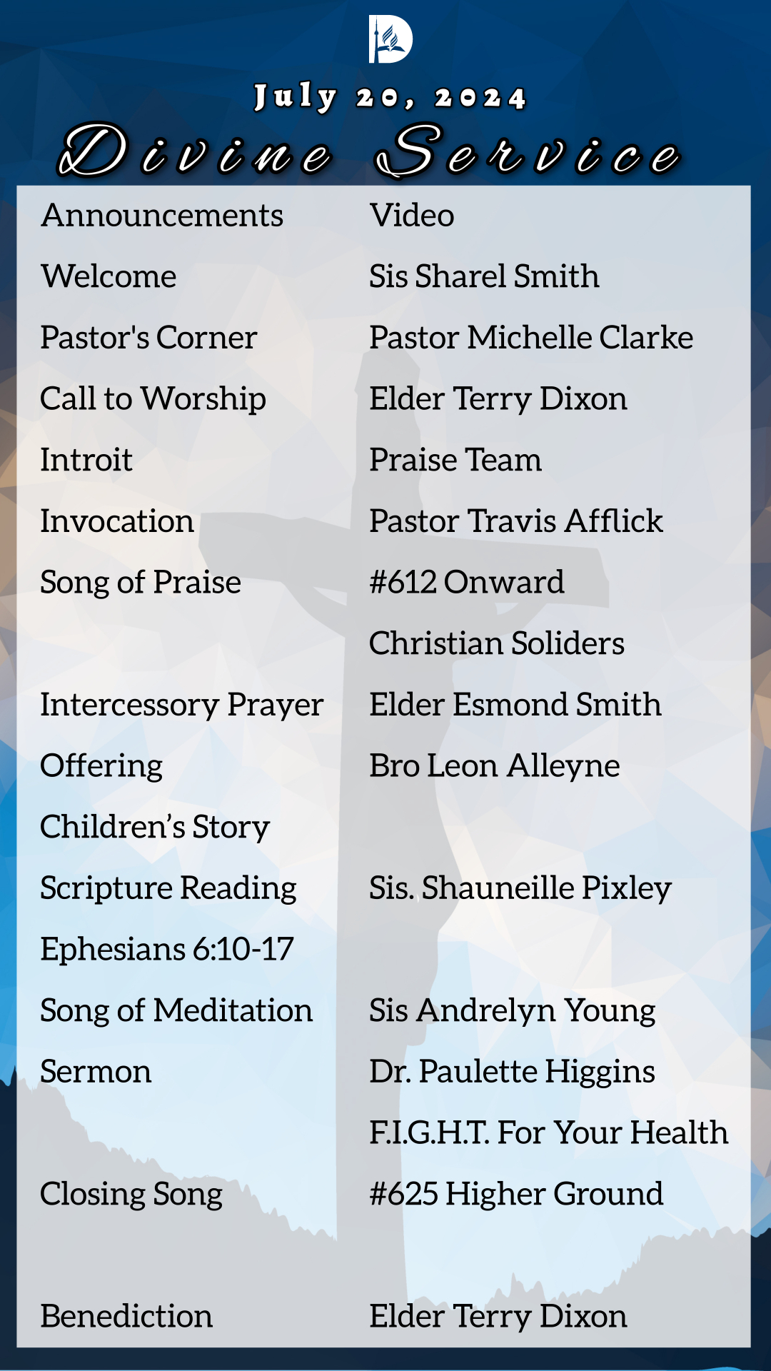 Sermon Title: F.I.G.H.T. For Your Health by Dr. Paulette Higgins ?