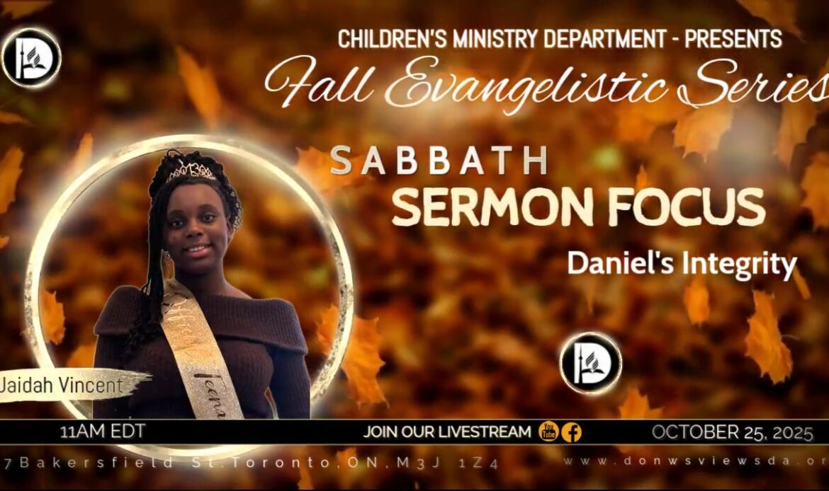 YOUTUBE TAGS: #DownsviewSDA #Sermon #JaidahVincent #HomeIsWhereTheHeartIs #Daniel5 #ChristianSermon #Adventist #ChurchOnline #Hope #Faith #BibleStudy #Worship