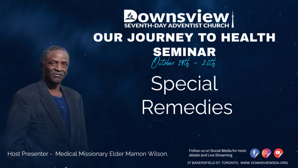Discover the power of natural remedies in this insightful session of the Downsview Seventh-day Adventist Church’s “Our Journey to Health” seminar series. Elder Mamon Wilson returns for night five, titled “Special Remedies,” to explore natural approaches to supporting your well-being.