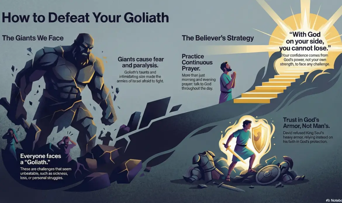 Whether the giant standing in your path today is a “fun-house mirror” health crisis, a financial desert, or the crushing weight of others’ expectations, the lesson remains unchanged. The “size” of the person facing the giant matters infinitely less than the strength of their connection to the Father.